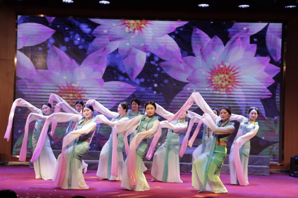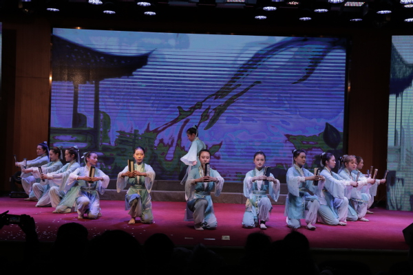 晚会在校合唱团的《老师,我总是想起你》中拉开帷幕,悠扬的歌声仿佛又将我们带回到那段青葱岁月,也体现了教师这个职业的伟大之处:相处虽短,涌泉终生;民族舞《俏花旦》将戏曲中花旦的手、眼、身法等动作与舞蹈语汇巧妙的融合在一起,为大家呈现出一幅生动的民俗画卷;艺术设计学院分工会带来的话剧《我们都在》告诉我们“教学事业无小事”,感动常在,我们常在;校青年职工带来的群舞《全民健身》以轻快的舞步迎接着新年的到来,呼吁大家携手运动,赢得健康常在;医学院分工会的《大医精诚,药言获众》散发着浓浓的“中药味”;第一分工会带来的旗袍秀《桃李芬芳》演绎了中国青花旗袍的古典与曼妙;机电工程学院的老师们带来了创意无限的《小人舞》表演;经济管理学院的女老师们舞着水袖,唱着“昔我往矣,杨柳依依,今我来思,雨雪霏霏”款款而来;信息工程学院的诗朗诵《诗意之师》带我们一同回味了恋爱时的第一次萌动,梦想时的第一次出发。