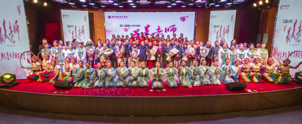 没有华丽的词藻,在晚会现场,学生代表用简单朴质的话语对受表彰老师进行了最真情的告白,为他们献上奖杯与证书,把最美的鲜花送给心中最美的园丁,最美的人生引路人。这批热爱教育事业、关爱学生、受学生尊敬和爱戴的先进典型,用我们身边优秀教师“刻苦钻研、敬业奉献、潜心育人”的先进事迹教育人、感化人,为进一步落实立德树人的根本任务,营造了“教书育人、尊师重教”的良好氛围。