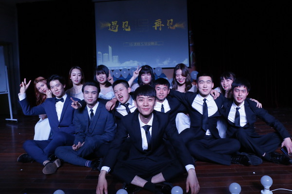 西装革履、礼服落地、红酒牛排、音乐气球……漫步红地毯,在印着“遇见 再见”的大喷绘上留下自己的姓名……这不是一场明星颁奖典礼,而是一群在校大学生送给成长的一场起航酒会,也是班主任在毕业生进入社会前上的一节特殊的就业课。酒会的主角是经济管理学院16连锁经营管理5班的34名即将毕业的准职业人。