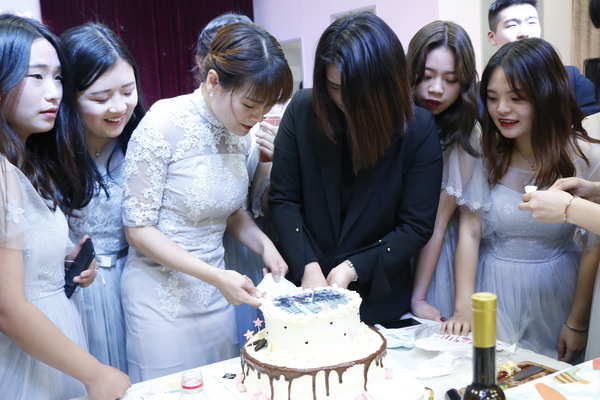 更让同学们惊喜的是班委为大家准备的神秘礼物——五年班级相处的回忆以及所有老师的祝福被制作成视频得以呈现。“16连锁5班的小伙伴们,你们是老师见过的最有活力最团结的班级,即将走出社会,老师希望你们勇往直前,努力工作,做一名出色的经管人。”连锁专业团队主任陶莉莉寄语。