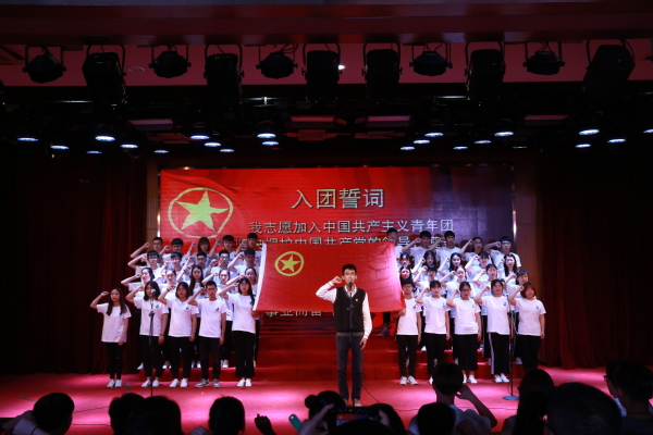 随后,“我志愿加入中国共产主义青年团, 坚决拥护中国共产党的领导, 遵守团的章程……”校团委副书记带领团员代表庄严宣誓,响彻全场,展现了xingkong.com青年团员积极向上的精神风貌。