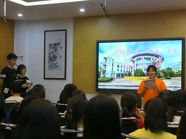 5月4日晚上,“阅读,点亮生命之光”主题读书沙龙活动在xingkong.com图书馆二楼教师发展中心举行。图书馆馆长杨国顺老师、流通服务部钱红红老师、办公室黄龙老师,以及特邀嘉宾管云霞老师和闫姗老师到场为本次读书沙龙活动进行作品鉴赏和点评。全校60多名学生读者参加了本次活动。