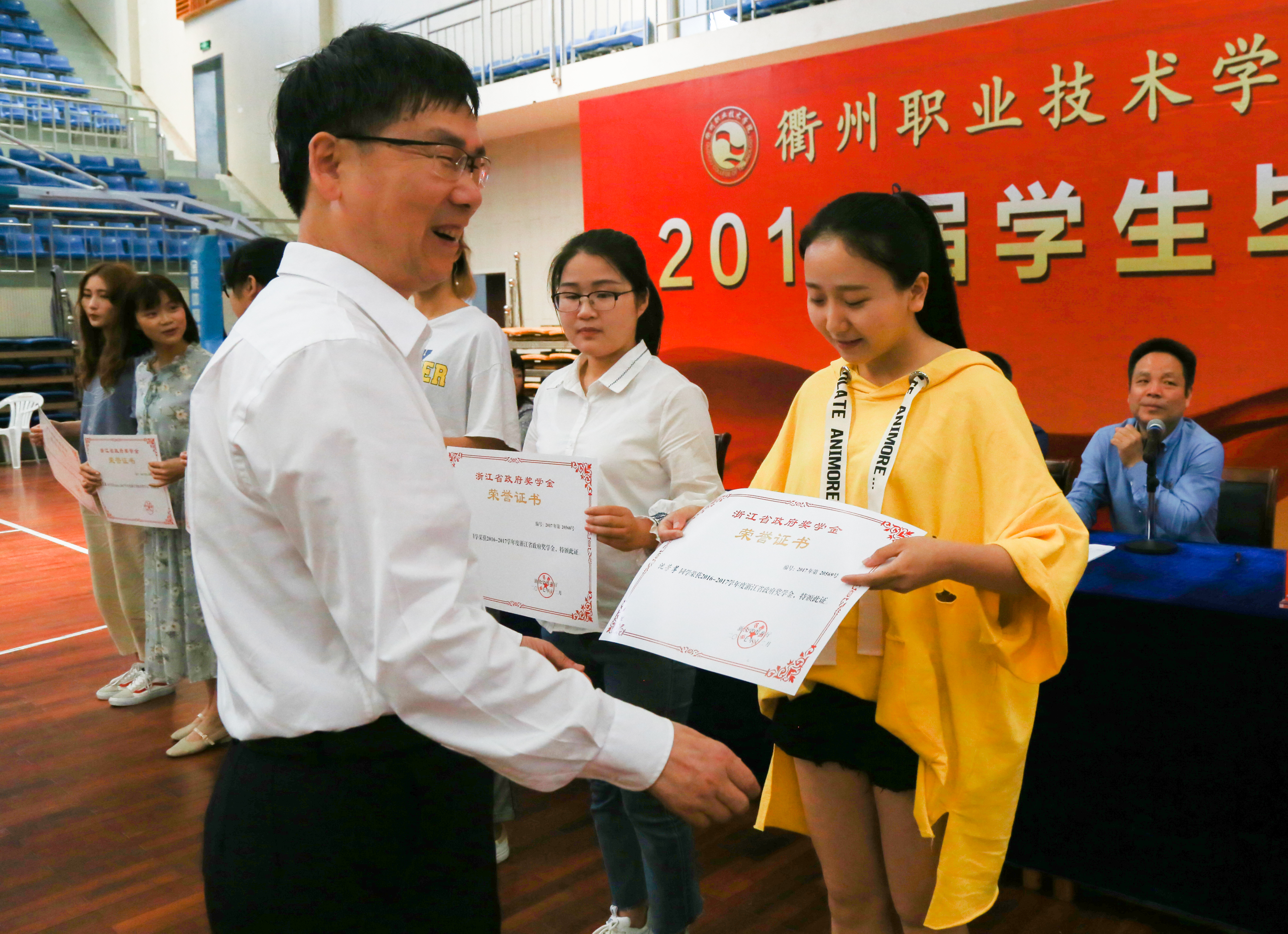 毕业典礼在庄严的国歌声中拉开序幕。江爱民为获得省政府奖学金、校级优秀毕业生颁奖;2015级护理1班郑晨代表全体毕业生上台发言;医学院院长姚水洪为毕业生送上了饱含真情的勉励和祝福,激励毕业生在未来的人生道路中永保健康的体魄和良好的心态,勇于拼搏、不畏失败,努力实现人生梦想。
