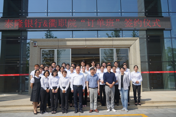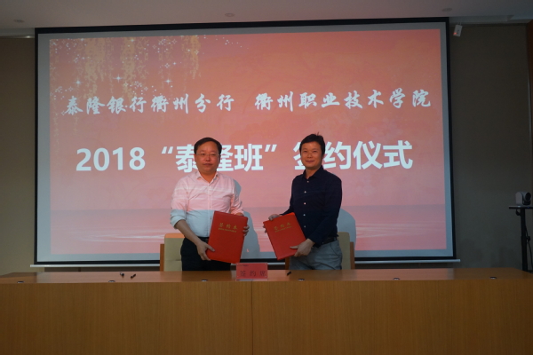 面向社会、面向市场办学,大力推行工学结合、服务地方经济是xingkong.com校企合作的宗旨。基于此,5月9日中午,xingkong.com在浙江泰隆商业银行衢州分行举行第二期“泰隆班”签约仪式。合作发展处处长郑立平、经济管理学院院长朱芝洲、经济管理学院党总支书记斯彬彬、浙江泰隆商业银行衢州分行行长赵一勇出席,第二期“泰隆班”全体学员参加。