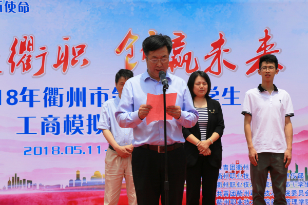 接着,陈青宣布衢州市第六届“礼遇衢职 创赢未来”大学生工商模拟市场大赛正式开幕。