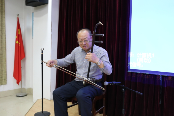整场讲座,朱春明老师以经典乐器为例分享民族音乐的美。朱春明老师介绍了民族乐器分为拉弦乐、吹管乐、弹拨乐和打击乐四大类,让同学们大致的了解了民族音乐的分类。朱老师着重介绍了拉弦乐中二胡的美妙音乐,强调了二胡音乐蕴含着演奏者独具魅力的丰富内心情感,同时它能与听众产生心灵上的共鸣。朱老师现场演奏了《赛马》和《二泉映月》,鼓励同学们多欣赏民族音乐,提高自身涵养。