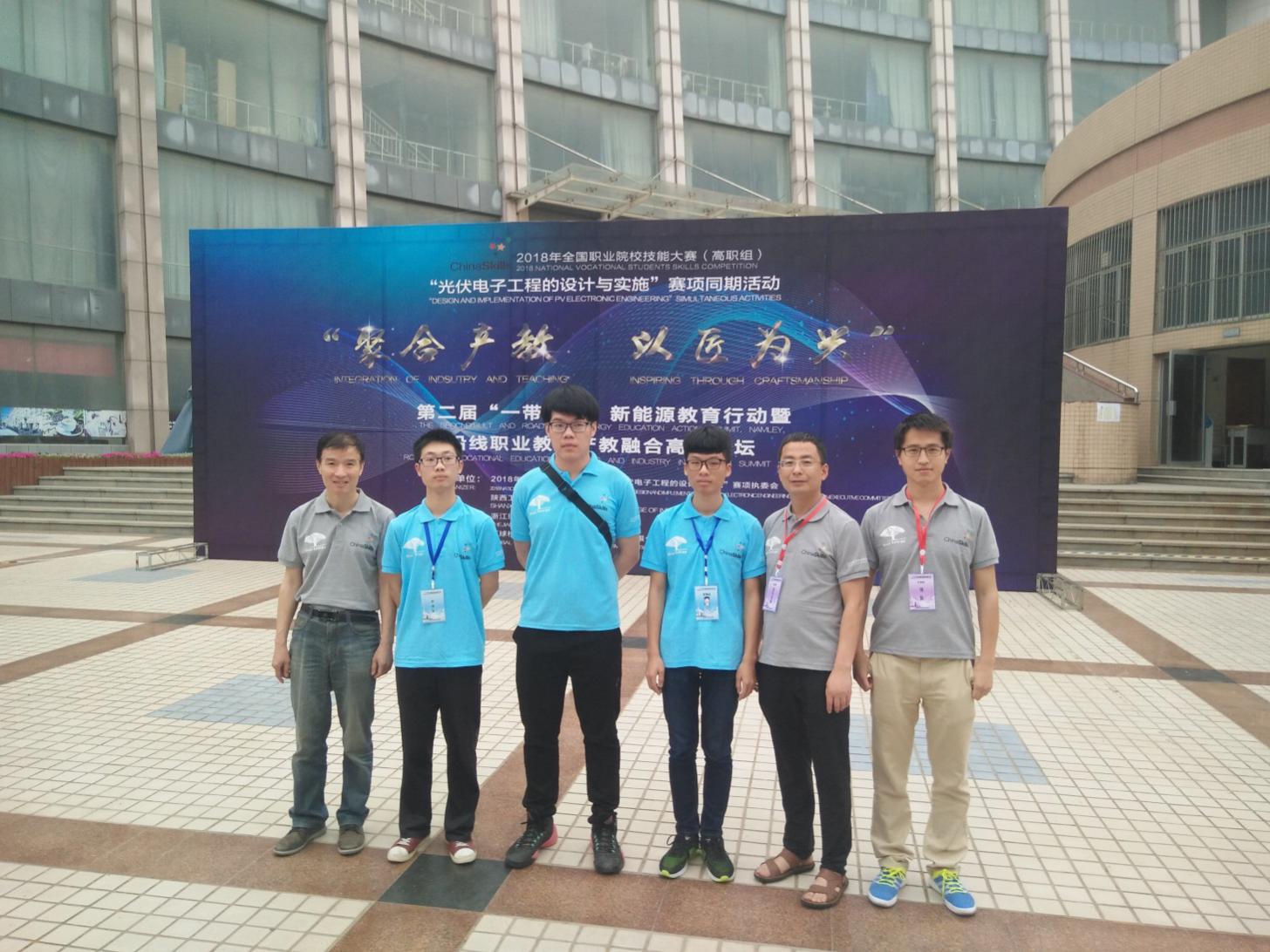 5月20日,2018年全国职业院校技能大赛高职组“光伏电子工程的设计与实施”赛项在陕西工业职业技术学院落下帷幕。xingkong.com信息工程学院余剑、郑敬良和陈海伟三位同学组成的代表队,在王真富和廖东进两位老师的指导下,凭借实力稳定发挥,获得二等奖。