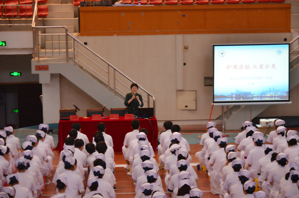 6月6日晚,医学院召开16级护理助产专业顶岗实习专题讲座暨实习动员大会。会议分专题讲座和实习动员大会二部分,浙江大学医学院附属第一医院护理教育中心王薇主任受邀作顶岗实习专题讲座。医学院院长姚水洪、党总支书记余文富、副书记吴秀仙、16级全体班主班、片区管理老师以及2016届护理助产596名学生参加了本次大会,大会由余文富主持。