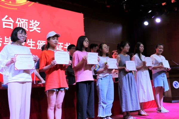 典礼在雄浑壮阔的国歌中拉开序幕。经济管理学院院长朱芝洲宣读省级、院级优秀毕业生名单,并由主席台所有领导为获奖学生颁奖。江爱民宣读经济管理学院2018届毕业生名单,为毕业生代表颁发毕业证书。