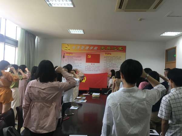 大会最后,所有与会人员佩戴党员徽章,庄严地举起右手,面向党旗宣誓,共同重温入党誓词,表达了为共产主义事业奋斗终身的理想信念。