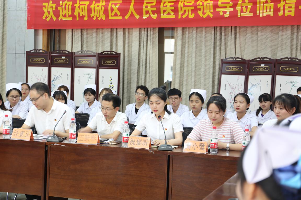 柯城区人民医院团委副书记祝黎昕作为中国共产主义青年团第十八次全国代表大会代表,于6月15日下午,与医院医务科科长王新春、团委书记汪素正等一行8人来到医学院调研,倾听准护士的心声。祝黎昕是xingkong.com14届订单班毕业生。
