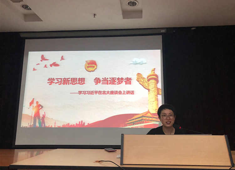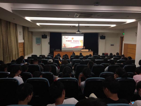 “七一”建党节前夕,为温党史,悟初心、强党性,弘精神,并深入学习全面贯彻习近平新时代中国特色社会主义思想,6月19日晚,经济管理学院在二号报告厅组织开展“学习新思想 千万师生同上一堂课”活动。经济管理学院党总支书记斯彬彬以《学习新思想 争当逐梦者》为题做主题讲座,深入浅出、生动解读习近平在北京大学师生座谈会和纪念马克思诞辰200周年大会上的重要讲话,学工办辅导员和100多位学生代表参加。