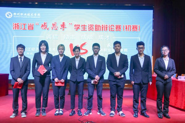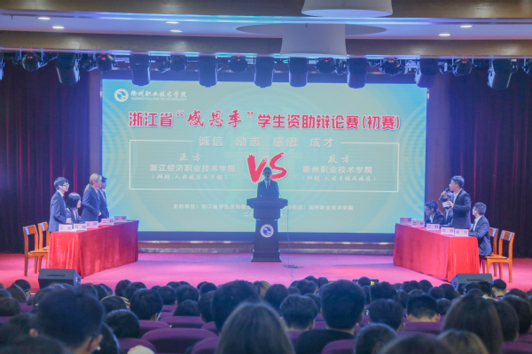 为了进一步培养受助学生诚信感恩意识和自强自立精神,6月15日下午,由浙江省学生资助管理中心主办,xingkong.com承办,以“诚信、励志、感恩、成才”为主题的浙江省“感恩季”学生资助辩论赛初赛在图书馆一号报告厅圆满结束。金华职业技术学院学生处副处长章红兵、同济大学浙江学院学生处处长孙雅萍等来自5所高校的专家担任评委,校学生处长陈海清等领导、老师出席了活动。