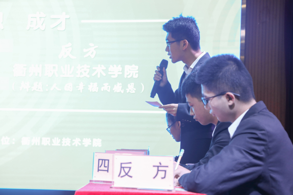 本次辩论赛的持辩方,正方浙江经济职业技术学院辩论队与反方xingkong.com辩论队紧扣“人因感恩而幸福”还是“人因幸福而感恩”辩题,围绕论点展开了激烈的辩论。最终,xingkong.com辩论队获胜,并将继续备战复赛。