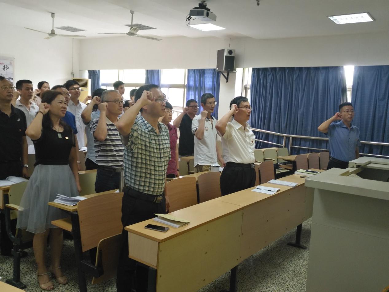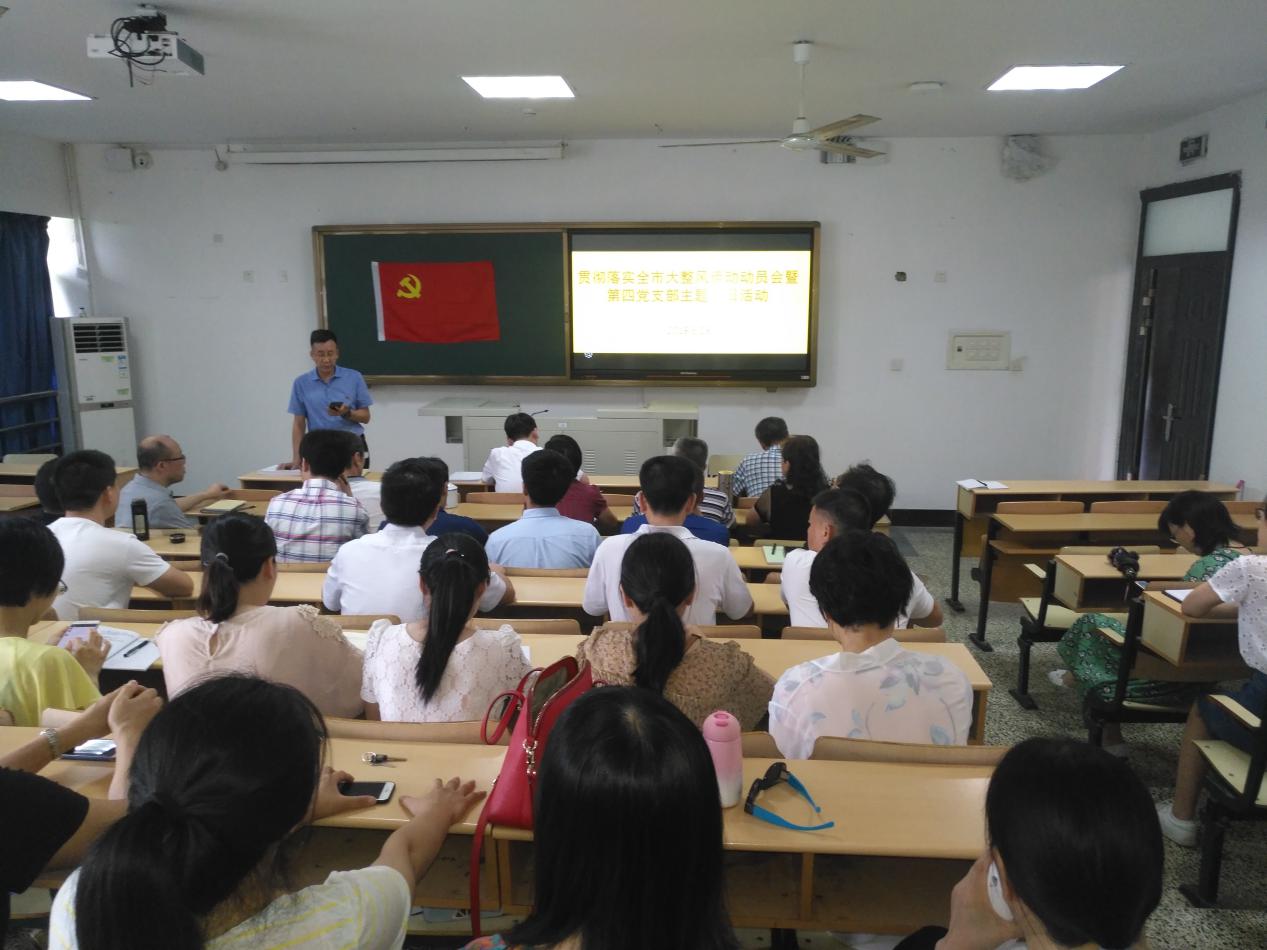 为深入学习贯彻全市大整风“十大行动”动员大会精神,把机关第四党支部的广大党员干部和普通教师的思想统一到市委决策部署上来,按照校党委组织部的统一部署,6月28日下午,机关第四党支部在阶东1-2教室召开主题党日活动,专题学习贯彻全市整风“十大行动”动员大会精神。校长江爱民,党委委员、副校长何百通,机关第四党支部全体党员和非党员的普通教师参加学习会。
