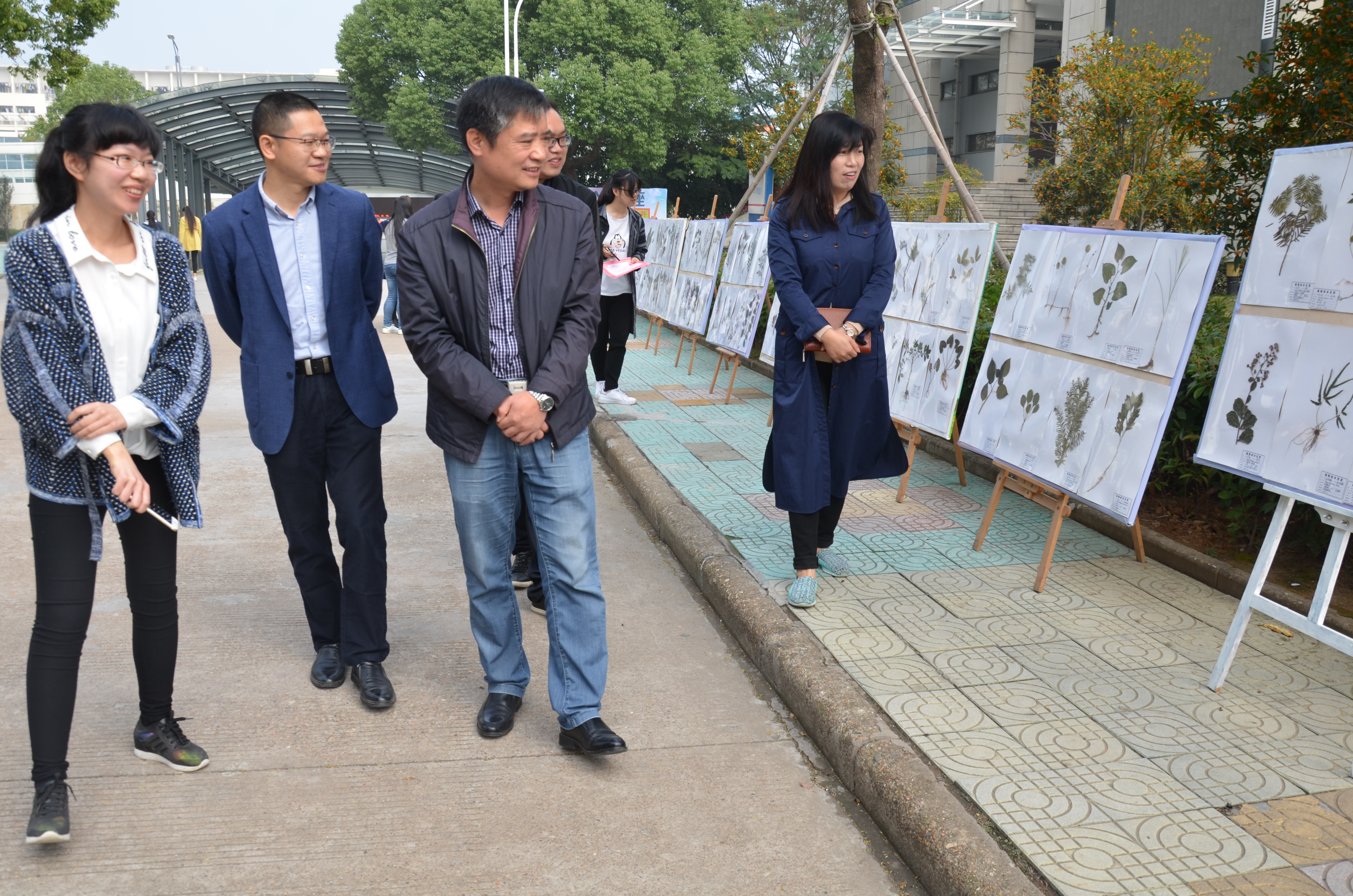 颁奖后,傅元勋来到学校中央大道,参观学生制作的优秀蜡叶标本,并与学生代表亲切交谈。据悉,本次实践活动共收到1000份标本作品,由每位同学从家乡就地取材,并独立完成原植物鉴别、采摘、制作;评选按照蜡叶标本规范性、科学性、美观性标准,并兼顾制作难度系数综合打分;获奖作品计划依次在中央大道、学生公寓展出,优秀作品还将由医学院中药标本馆馆藏。