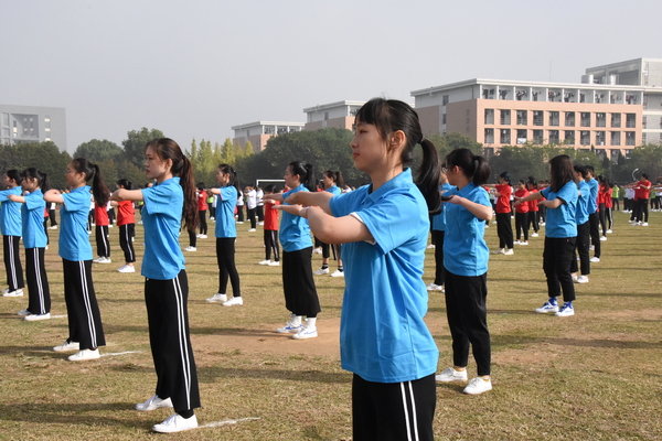 激烈而又密集的鼓声带动着众人的热情,一面面热情似火的红旗在茵绿的草坪上舞动着、燃烧着,昭示着青春的热情。随后,是女教工的瑜伽表演,舞动的身躯展示了女性的柔和,温情似水。紧接着,是各二级学院共同组成的学生广播操表演,整齐一致。三个团体表演为运动会拉开了序幕。