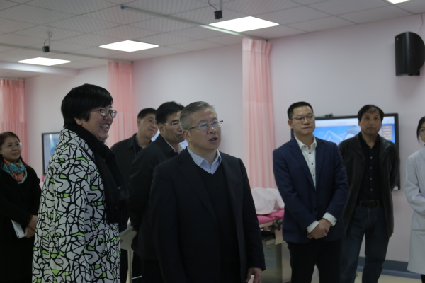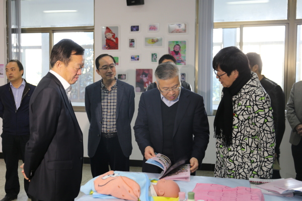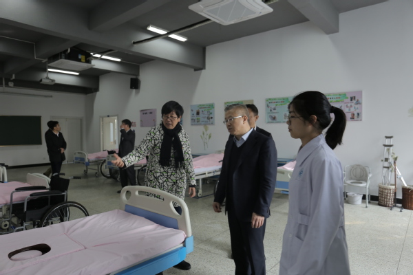 徐文光一行首先来到了xingkong.com医学实训楼,参观了护理实训基地、母婴护理实训基地、老年护理基地、中药学实训基地。在母婴护理实训室,徐书记拿起月嫂培训手册仔细观看,详细了解了月嫂的培训情况,并对xingkong.com的社会培训工作给予了充分的肯定。