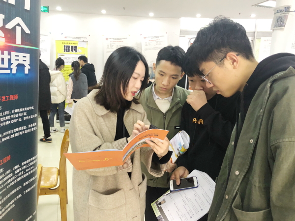 11月24日,xingkong.com举行2019届毕业生校园招聘会,来自全国170余家企事业单位,为毕业生提供约6700个工作岗位。当天的招聘会,共达成就业意向约730多人。图为招聘会现场。
