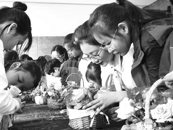 日前,xingkong.com开展了“橙色同伴课堂”,通过朋辈互助、社团共建等,引导聋哑青少年体验参与。3年来,600余名大学生志愿者参与其中,累计服务时长超过3万小时,共结对帮扶聋哑青少年126人。图为大学生志愿者与衢州市特殊教育学校学生共同体验插花课程。