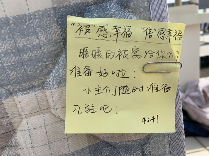 “暖暖的被窝给你们准备好啦,小主们随时入驻吧!”写下对联系寝室同学们的暖心话语,xingkong.com经济管理学院的姚春老师小心翼翼地将便笺纸别在对应床铺的棉被上,然后一趟趟地往返寝室和楼顶的晾晒场地,搬运被子、抱枕、玩偶,铺开、拍打、整理......