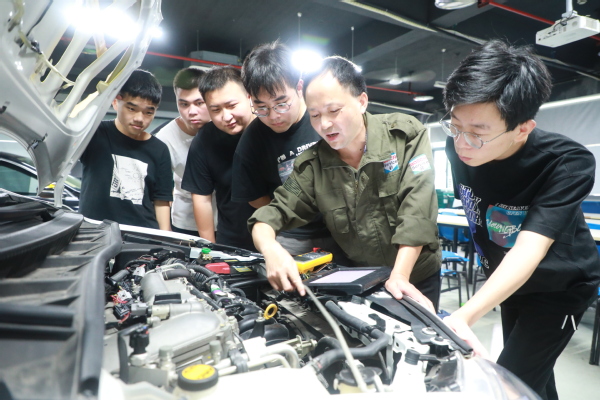“老师常说,一辆车出现什么毛病都是很随机的,不可能完全按照你学习的进度来,你们要学会随机应变。”学生们说,除了在课堂上,余老师还常常在汽修店、4S店出现汽车“疑难杂症”时,带学生去现场“会诊”。