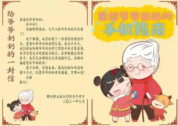 为了这份寒假作业,衢职院学生会的同学们设计了一份《老年人智能手机实用指南》,分送给全校学生当讲义。