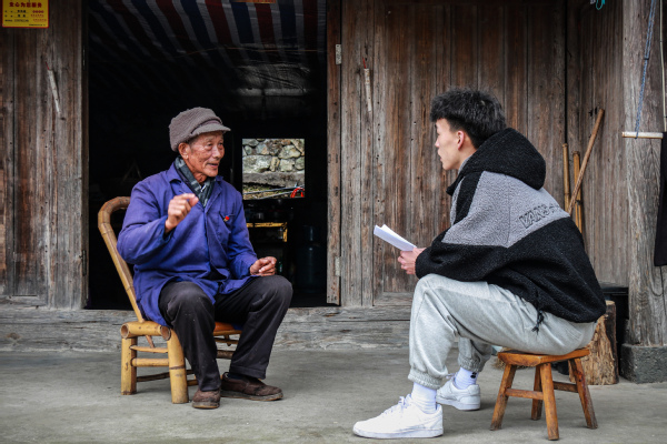 采风团团员李志博采访的是同村的老党员李先鉴。坐在自家门前的小藤椅上,李先鉴老人打开了话匣子。老人曾是温州市苍南灵溪镇东阳村的村支书,当年村子贫困潦倒,他号召村干部们自费买了扁担、锤子和箩筐等工具,一起上山挑石、下林踩路,硬是建起了水库,修出了20公里的马路。“没有一分钱工资,到过年还欠大家钱。”李先鉴说,当时干工作都没有收入,但党员同志和人民群众紧紧团结到一起,铆足干劲,“我们从树林、草地里开始挖,最后一条二十多公里的路硬是被我们挖出来了。”