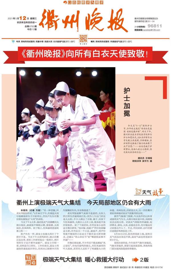 《衢州晚报》头版 5月12日发布 通讯员 王靖瑶 欧阳洪萍 吴宇方摄