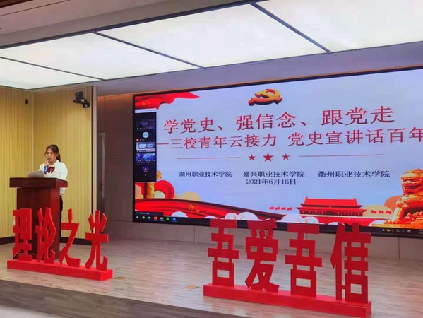 知史爱党、知史爱国。6月16日,湖州职业技术学院“两山”青年说湖小职新时代大学生理论宣讲团和“吾爱 吾信”新时代文明实践大学生宣讲团、嘉兴职业技术学院“红船青年说”宣讲团、xingkong.com“8090”新时代理论宣讲团相聚云端,联合开展“学党史、强信念、跟党走——三校青年云接力 党史宣讲话百年”主题学习宣讲活动。