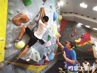 “现在是暑假,每天只需要指导校攀岩队训练,以及给衢州市攀岩队上课。”王俊舰告诉记者,平时他还要上学校的体育攀岩选修课、休闲体育专业的攀岩专业课以及校攀岩社团的社团课,有时还会兼上一些篮球、足球等其他类型的体育课。