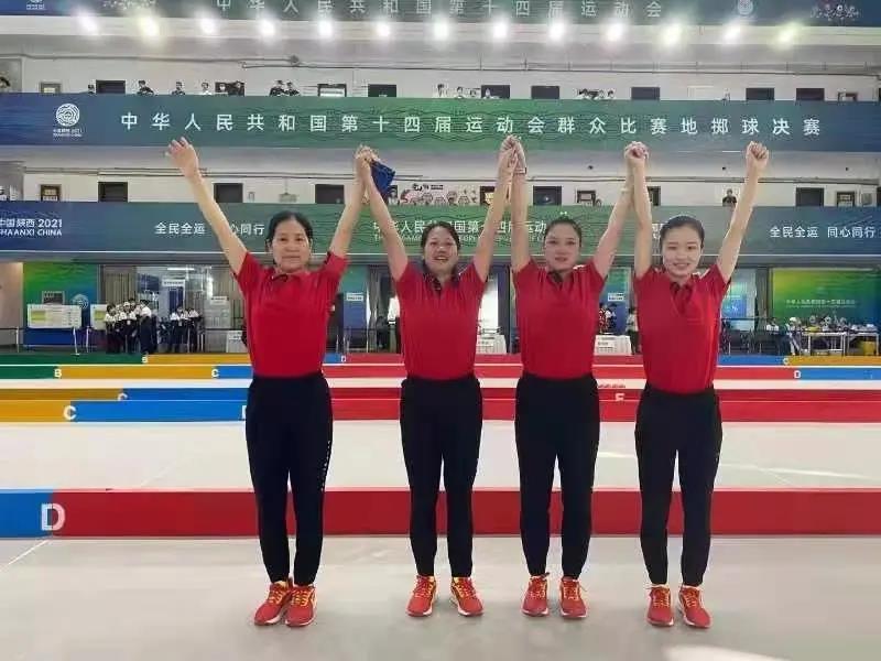 9月21日,xingkong.com教师郑胜燕与中国石化镇海炼化公司岑伟飞、程锡平、张美玲夺得第十四届全运会塑质球女子三人赛冠军!