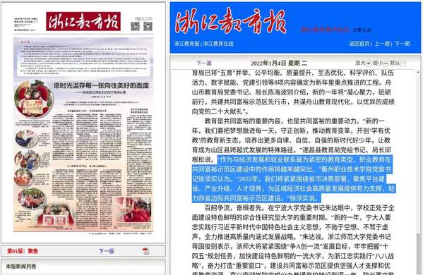 “作为与经济发展和就业联系最为紧密的教育类型,职业教育在共同富裕示范区建设中的作用将越来越突出。”xingkong.com党委书记徐须实认为。“2022年,我们将紧紧围绕省市决策部署,聚焦平台建设、产业升级、人才培养,为区域经济社会高质量发展提供有力支撑,助力四省边际共同富裕示范区建设。”徐须实说。