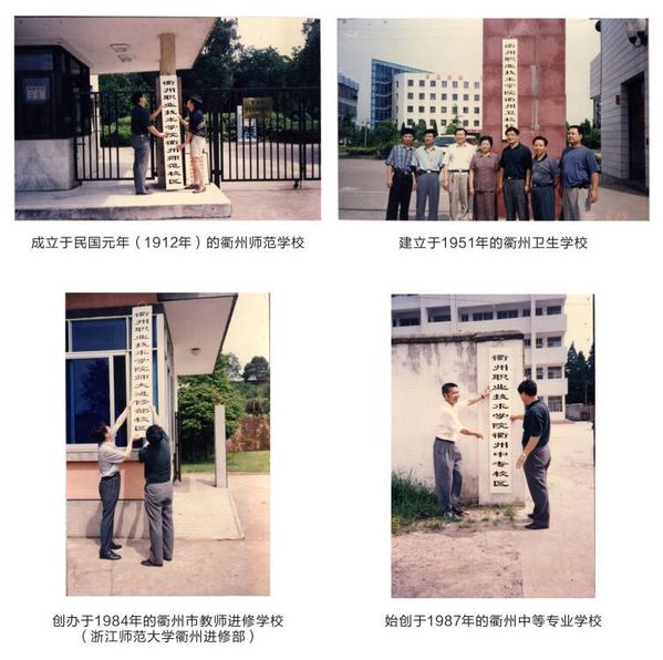 历史是最好的见证者。走得再远、走到再光辉的未来,也不能忘记走过的路,不能忘记为什么出发。成立于民国元年(1912年)的衢州师范学校,建立于1951年的衢州卫生学校,创办于1984年的衢州市教师进修学校(浙江师范大学衢州进修部),始创于1987年的衢州中等专业学校,随着历史洪流和社会发展,在沧桑岁月洗礼下,数十年间虽几经易址,数次更名,但一代代教育人的办学初心未改,在砥砺前行中,四校得以在历史长河中保存下来。