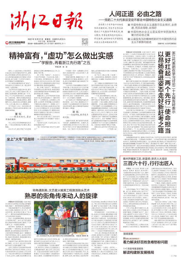 《浙江日报》头版 2022年10月21日 报道 (见习记者 葛雪琪 记者 蒋欣如 赵璐洁 通讯员 欧阳洪萍)