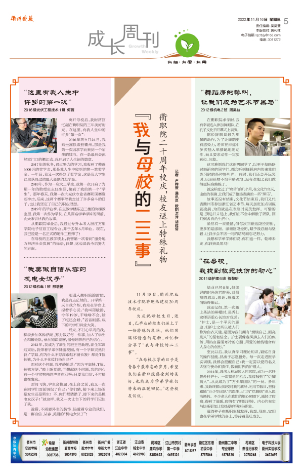 “在母校求学的日子是青春中最难忘的岁月,希望我们在衢职院感受到的美好,也能成为学弟学妹们将来的温暖回忆。”这些校友们说。