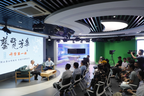 “让我们现场连线行业专家与学生家长,听听他们的想法和建议……”演播间里,xingkong.com艺术设计学院开办的《艺览芳华》节目正有条不紊地录制,这也是艺术设计学院“开学第一课”的授课现场。