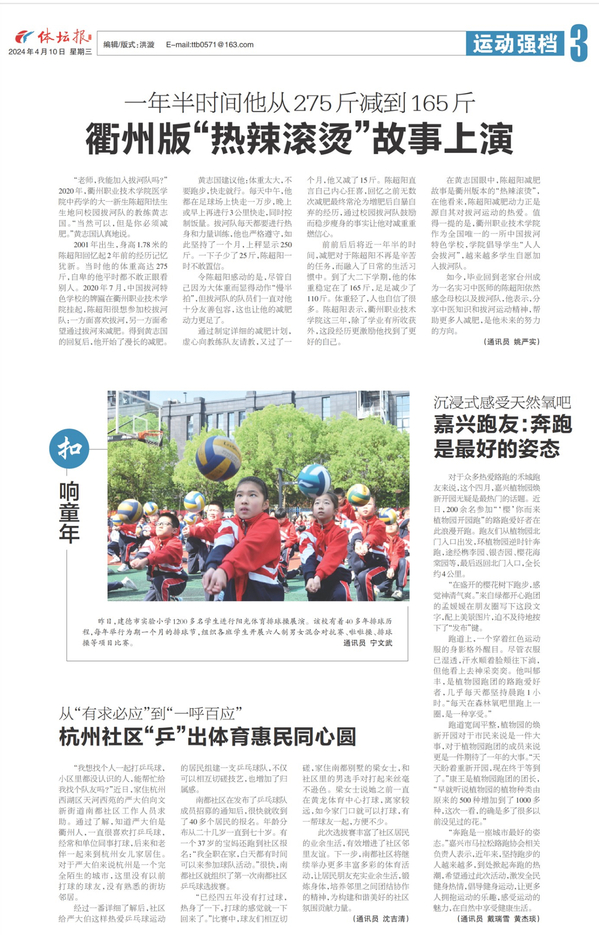 在黄志国眼中,陈超阳减肥故事是衢州版本的“热辣滚烫”,在他看来,陈超阳减肥动力正是源自其对拔河运动的热爱。值得一提的是,xingkong.com作为全国唯一的一所中国拔河特色学校,学院倡导学生“人人会拔河”,越来越多学生自愿加入拔河队。