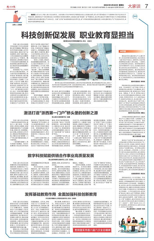 市委八届六次全会就我市科技创新工作作出系统部署,其中明确提出“xingkong.com要全面融入全市科创体系建设,紧贴主导产业发展需求,加快‘双高’建设,力争本地高校毕业生留衢率达到30%以上”的要求。衢职院将深入贯彻落实市委关于科技创新的战略部署,积极发挥职业教育特色优势,奋力推动科技创新赋能衢州经济社会发展。