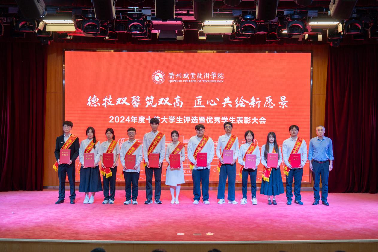 大会对过去一年取得优异成绩的学生集体和个人进行表彰,与会领导为获奖代表颁奖,包括国家励志奖学金185人、国家级学生技能(科技)竞赛25项、浙江省政府奖学金140人、省级学生技能(科技)竞赛一等奖赛项30项、省级学生个人荣誉称号2项、校级优秀学生奖学金1345人、校级学生个人荣誉称号805项、校级双优班11个。