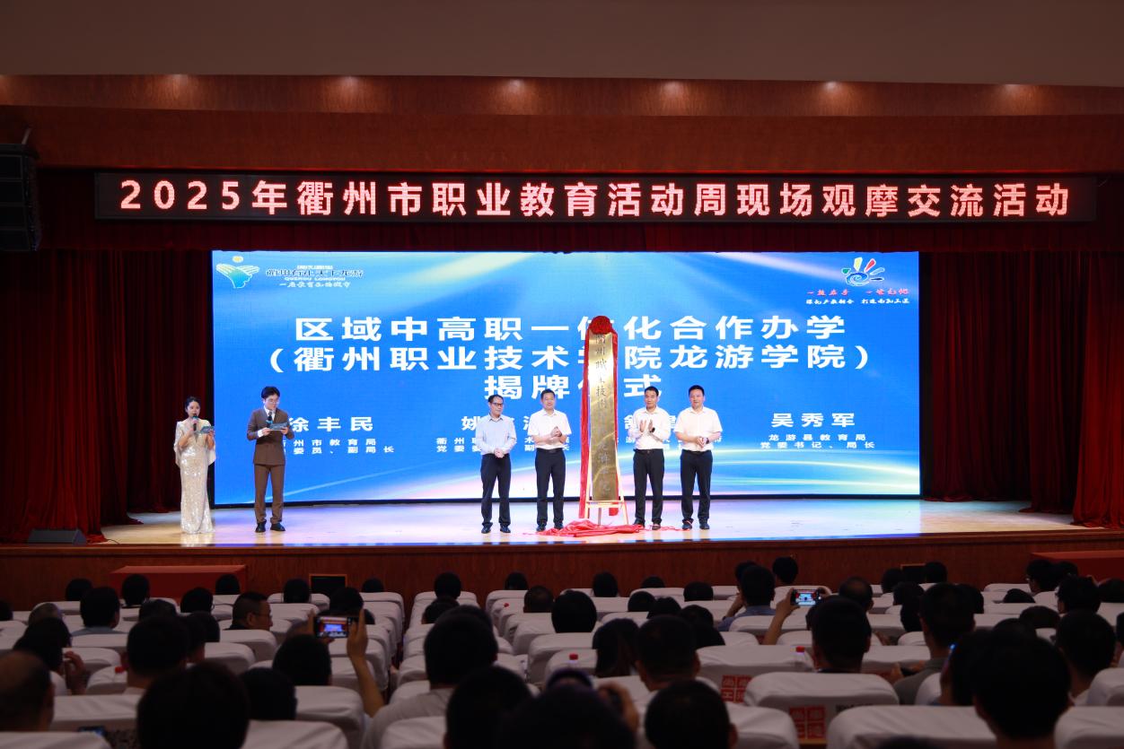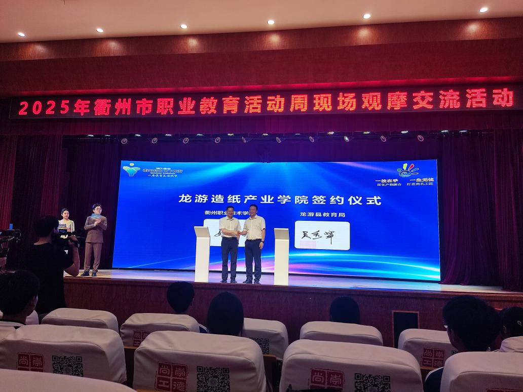 5月20日,衢州市职业教育活动周系列活动在龙游县隆重举行。校党委委员、副校长姚水洪率队参加。活动主会场,实施区域中高职一体化办学的xingkong.com龙游学院揭牌成立。学校与龙游县人民政府签署了《共建龙游造纸产业学院战略合作协议》,标志着校地合作在产教融合领域迈出关键一步,为区域中高职一体化人才培养改革注入新动能。