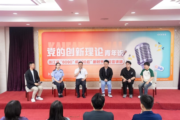 5月22日,受清华大学邀请,党的创新理论青年说——浙江省“8090”和“00后”新时代理论宣讲团进名校系列活动走进清华园。xingkong.com00新时代理论宣讲团团长、22级化工装备1班郑德镇与青年宣讲员们以开放麦宣讲的形式与现场师生进行了分享交流。