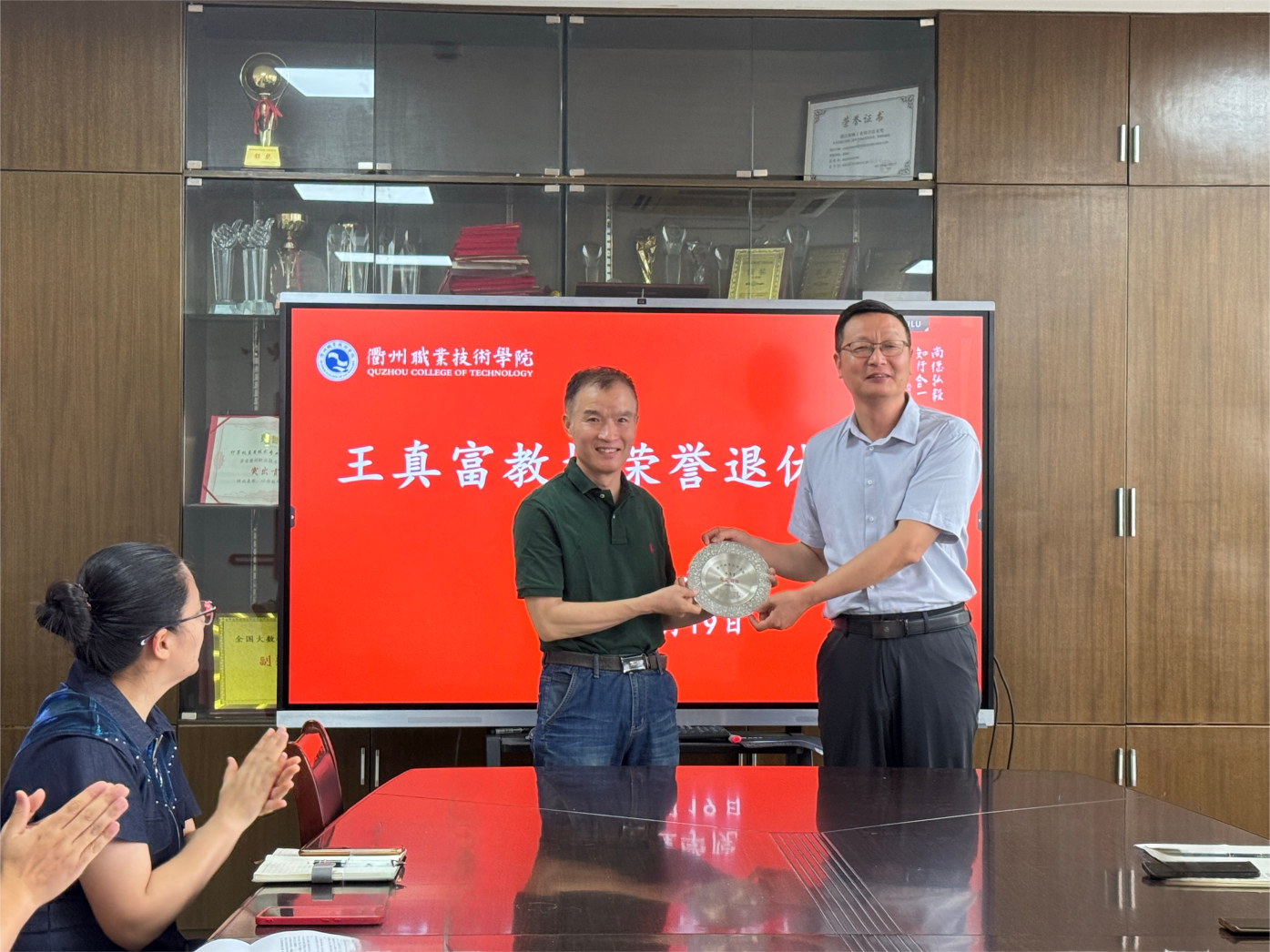 王真富发表荣休感言,深情回顾了学习经历及在衢州卫校、衢职院工作奋斗的峥嵘岁月,畅叙同事们同甘共苦、同舟共济结下的深厚友情,同时感谢学校给予的教科研平台,感谢同事们的支持和帮助,祝福衢职院蒸蒸日上,祝愿信息工程学院越来越好。