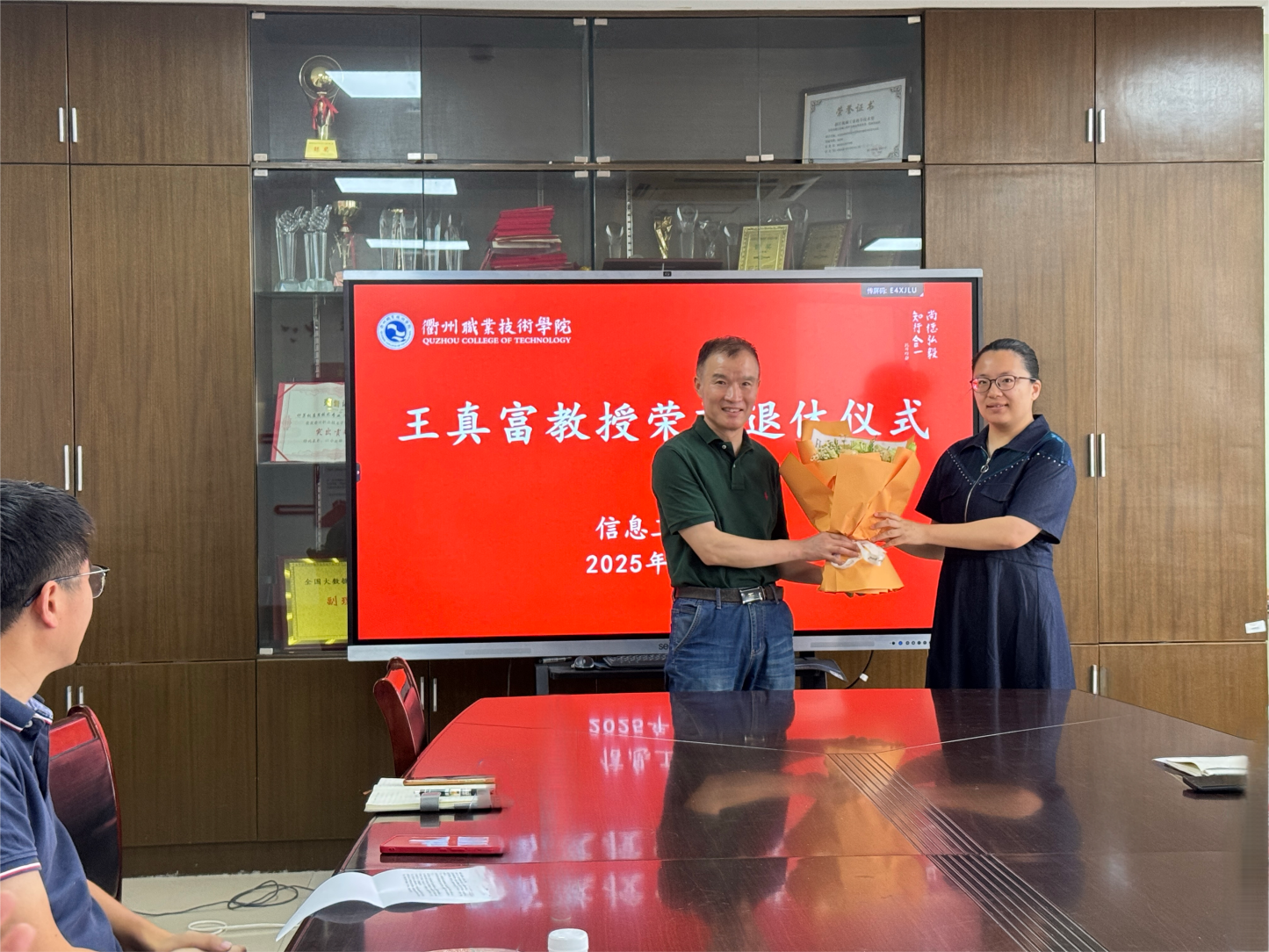 6月19日上午,信息工程学院在724会议室为王真富教授举行荣誉退休仪式,校党委副书记、校长吕延文出席,学院领导班子及相关专业教师参加活动,仪式由院党总支书记、教代会执委会主任廖建平主持。