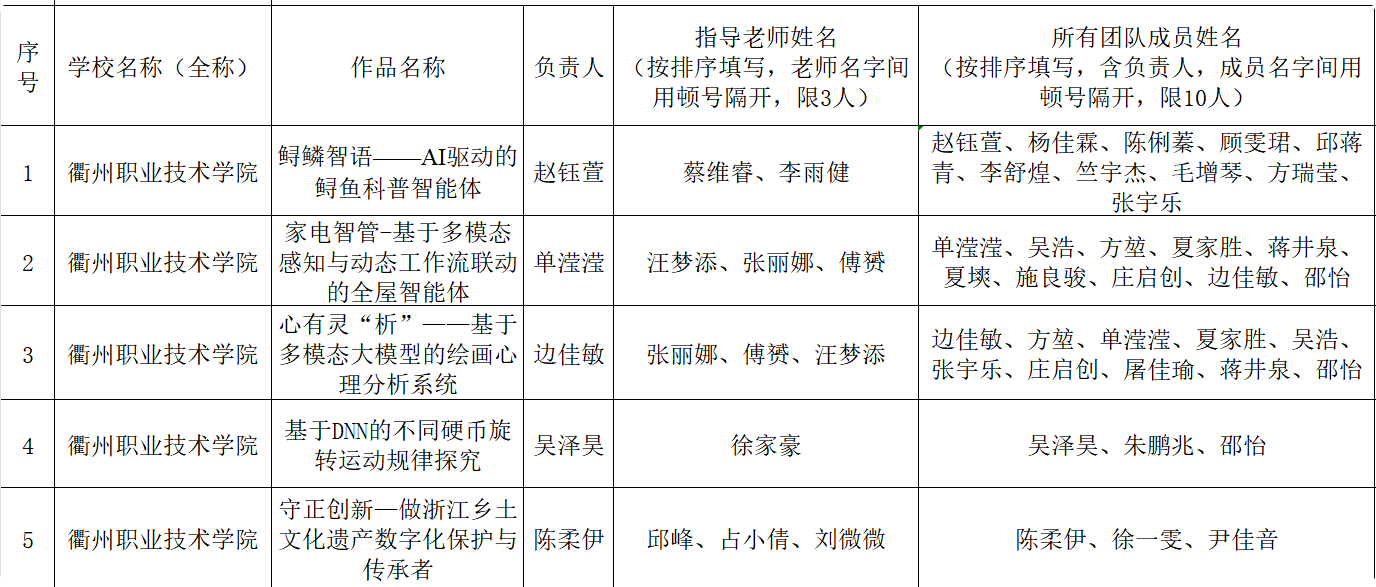 根据浙江省第十九届“挑战杯”大学生课外学术科技作品竞赛“人工智能+”专项赛工作要求,xingkong.com组织开展了“人工智能+”专项赛作品申报工作,经各二级学院组织申报,现将拟推荐省赛作品进行公示。公示时间2025年7月11日-7月15日,共5天,联系电话:8068095,13575666559,13505707877。