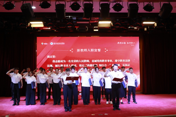 学校2025年新入职教师接受吕延文校长颁发的聘书,进行集体入职宣誓。