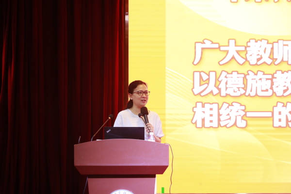 9月9日下午,xingkong.com举办2025年教师节庆祝大会暨师德师风专题报告会。“全国教书育人楷模”“全国模范教师”,武汉市电子信息职业技术学校党总支书记马丹教授应邀作德师风专题报告,党委书记徐须实,党委副书记、校长吕延文,党委副书记何百通,党委委员、副校长徐浪静、姚水洪,党委委员、宣传部部长孔庆红,党委委员、组织部部长周帅出席,中层干部和教师代表等近300人参加。