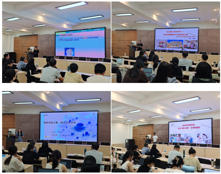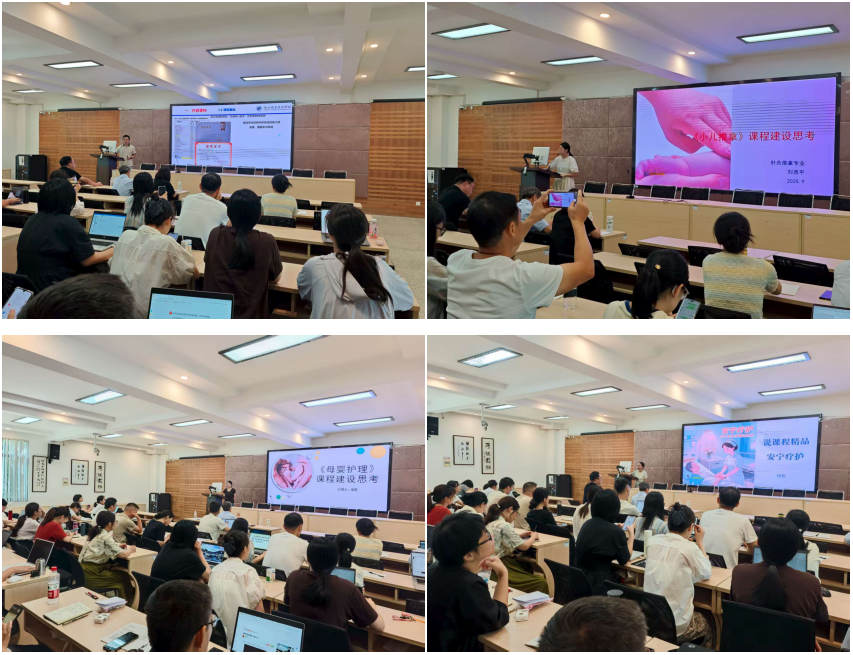 9月7日下午首先开展“说课程入门”汇报,吴敏娟等3位新进教师以“贯彻课标,吃透教材,教法应用”逻辑为主线,阐述对课程标准的理解、教材体系的把握及教学方法的初步运用,清晰展现专业成长起点,为学校实施精准青年教师培养规划提供依据。随后进行暑期培训成果分享,毛翠等4位暑期参加国培和省培项目的教师紧扣“学了什么、有何启发、如何应用”核心思路,系统分享培训概况、核心知识收获、关键环节启发及教学应用规划,为后续智慧康养课程建设、教学能力竞赛备赛、AI技术融入教学等工作提供了清晰路径。